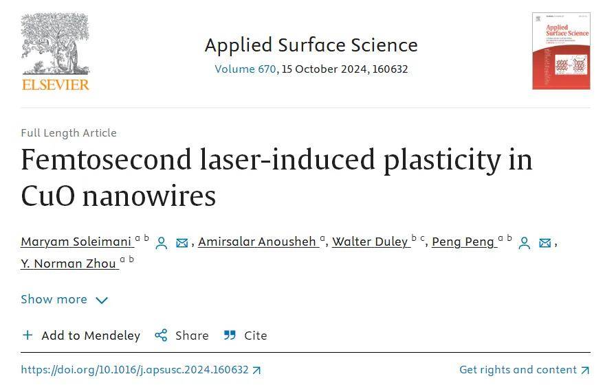 據(jù)悉,加拿大滑鐵盧大學(xué)的科研人員報道飛秒激光誘導(dǎo)的氧化銅納米線可塑性的研究。相關(guān)研究以“Femtosecond laser-induced plasticity in CuO nanowires”為題發(fā)表在《Applied Surface Science》上。