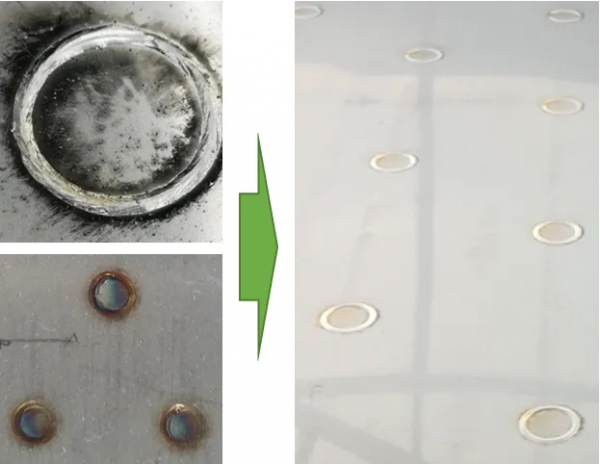 通過采用大族光子6000W連續光纖激光器,結合同軸氣流裝置并進行工藝優化,可實現大幅面換熱板高質量焊接,整板焊后干凈整潔,焊縫表面光亮無氧化、強度高,滿足客戶加工要求。