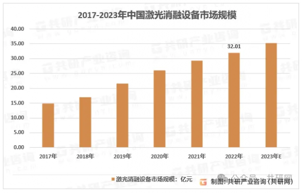 2017-2023年中國激光消融設備市場規模。資料來源:共研產業咨詢(共研網)