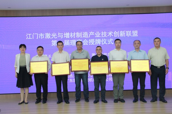 活動現(xiàn)場進行了江門市激光與增材制造產(chǎn)業(yè)技術(shù)創(chuàng)新聯(lián)盟揭牌儀式。江門市科技局黨組書記、局長劉長虹,蓬江區(qū)副區(qū)長區(qū)林杰,廣東工業(yè)大學教授、博士生導師王成勇副校長,中山大學教授、廣東省激光行業(yè)協(xié)會監(jiān)事長江紹基,廣東省激光行業(yè)協(xié)會秘書長邵火,五邑大學教授吳勇華共同為聯(lián)盟揭牌。同時,還進行了創(chuàng)新聯(lián)盟理事長、副理事長單位授牌儀式。