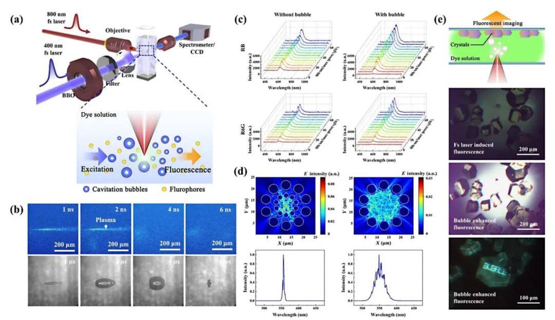 圖8超快激光在染料溶液中誘導氣泡增強熒光。