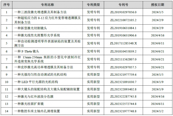 作為國家級高新技術企業和專精特新“小巨人”企業,波長光電始終堅持技術驅動發展戰略。報告期內,公司研發投入11,104,405.51元,同比增長17.38%。公司新增8項授權發明專利和6項授權實用新型專利,累計擁有專利技術超過一百四十項,涵蓋了光學薄膜設計與制備、高功率激光鏡頭制造等核心技術領域。這些技術積累為公司提供了強大的研發能力和市場競爭力,確保了公司在精密光學領域的領先地位。