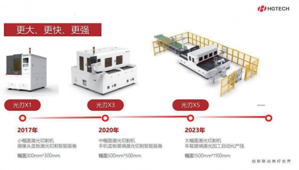 華工激光光刃系列設備專注于脆性材料行業激光 切割應用,為客戶提供玻璃、藍寶石等透明脆性材料 切割解決方案,適用于不同幅面大小、厚度的脆性材 料切割加工,有加工效率快、精度高、邊緣質量好等 優勢,廣泛應用于 3C、半導體、顯示面板、汽車等行業。