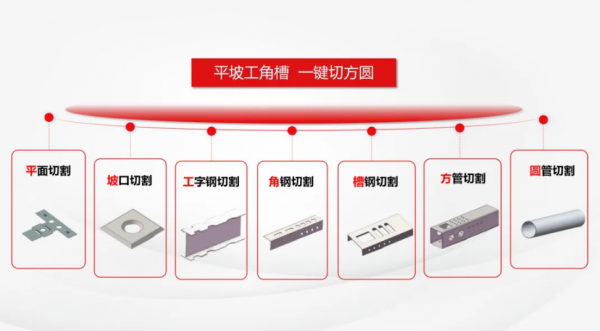 威士登WSD-E10-PLUS多合一型鋼激光三維切割控制系統不僅限于執行型鋼切割任務,它具備強大的功能模式切換能力。通過切換至不同的功能模式,該設備能夠實現多種型材的切割作業。它能夠輕松應對包括平板、平坡、工字鋼、角鋼、槽鋼在內的多種型材切割任務。此外,威士登WSD-E10-PLUS還能夠進行方管和圓管的切割作業,進一步擴展了其應用范圍。