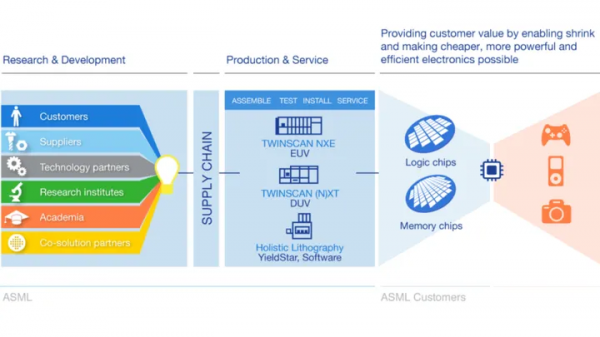 很快整個行業就圍繞EUV運轉起來,1997年英特爾和美國政府牽頭成立EUV LLC聯盟,該聯盟匯聚了美國頂尖的研究資源和芯片巨頭,包括勞倫斯利弗莫爾實驗室、勞倫斯伯克利實驗室、桑迪亞國家實驗室三大國家實驗室,聯合IBM、AMD、摩托羅拉等科技巨頭,集中數百位頂尖科學家,共同研究EUV光刻技術,共享研究成果。美國政府擔心尖端技術落入外國公司,并且有意打擊日本半導體產業,所以反對日本光刻巨頭尼康的加入,規模尚小的ASML做出在美國建立工廠和研發基地等多項讓步后才成功加入EUV聯盟,而臺積電當時還是不起眼的小代工廠,也沒有被接納加入。不過考慮到ASML和臺積電本來就有間接持股關系,未來的臺積電在EUV領域舉足輕重也不為怪。