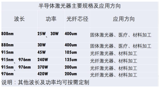 以國內激光技術領域創新先鋒杰普特為例,經過18年深耕和發展,已成為國內少有的同時擁有脈沖、連續、固體、超快激光器技術與核心自動化技術的公司,而這也與其在半導體激光器領域的積累密不可分。憑借在光學準直技術、激光束整形技術、耦合技術、激光器集成技術等領域深厚積累,除了主力出貨的808nm、880nm、915nm、976nm波段外,杰普特自研半導體激光器已經覆蓋藍光、綠光、1xxx系列等各多種波段,功率覆蓋25W-500W范圍,并可根據具體需求定制波長和功率,從而為公司打造全品類、各波段、不同模式的光纖激光、固體激光、超快激光等產品提供關鍵器件保障,也為公司成為消費電子、泛半導體、新能源、生物醫療等行業“隱形冠軍”發揮重要作用。