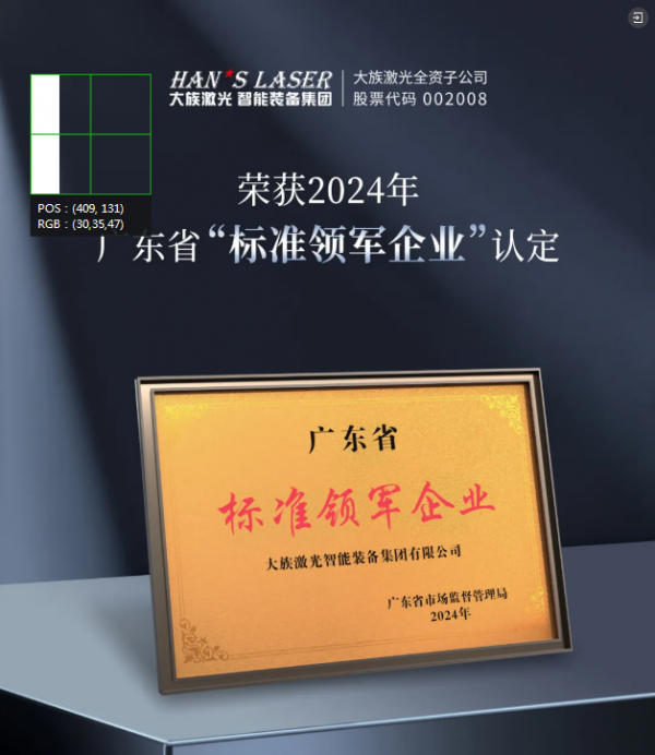近日,大族激光旗下全資子公司大族激光智能裝備集團有限公司(以下簡稱:智能裝備集團)榮獲“廣東省標準領軍企業(yè)”榮譽稱號。