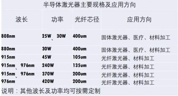 以國(guó)內(nèi)激光技術(shù)領(lǐng)域創(chuàng)新先鋒杰普特為例,經(jīng)過18年深耕和發(fā)展,已成為國(guó)內(nèi)少有的同時(shí)擁有脈沖、連續(xù)、固體、超快激光器技術(shù)與核心自動(dòng)化技術(shù)的公司,而這也與其在半導(dǎo)體激光器領(lǐng)域的積累密不可分。憑借在光學(xué)準(zhǔn)直技術(shù)、激光束整形技術(shù)、耦合技術(shù)、激光器集成技術(shù)等領(lǐng)域深厚積累,除了主力出貨的808nm、880nm、915nm、976nm波段外,杰普特自研半導(dǎo)體激光器已經(jīng)覆蓋藍(lán)光、綠光、1xxx系列等各多種波段,功率覆蓋25W-500W范圍,并可根據(jù)具體需求定制波長(zhǎng)和功率,從而為公司打造全品類、各波段、不同模式的光纖激光、固體激光、超快激光等產(chǎn)品提供關(guān)鍵器件保障,也為公司成為消費(fèi)電子、泛半導(dǎo)體、新能源、生物醫(yī)療等行業(yè)“隱形冠軍”發(fā)揮重要作用。
