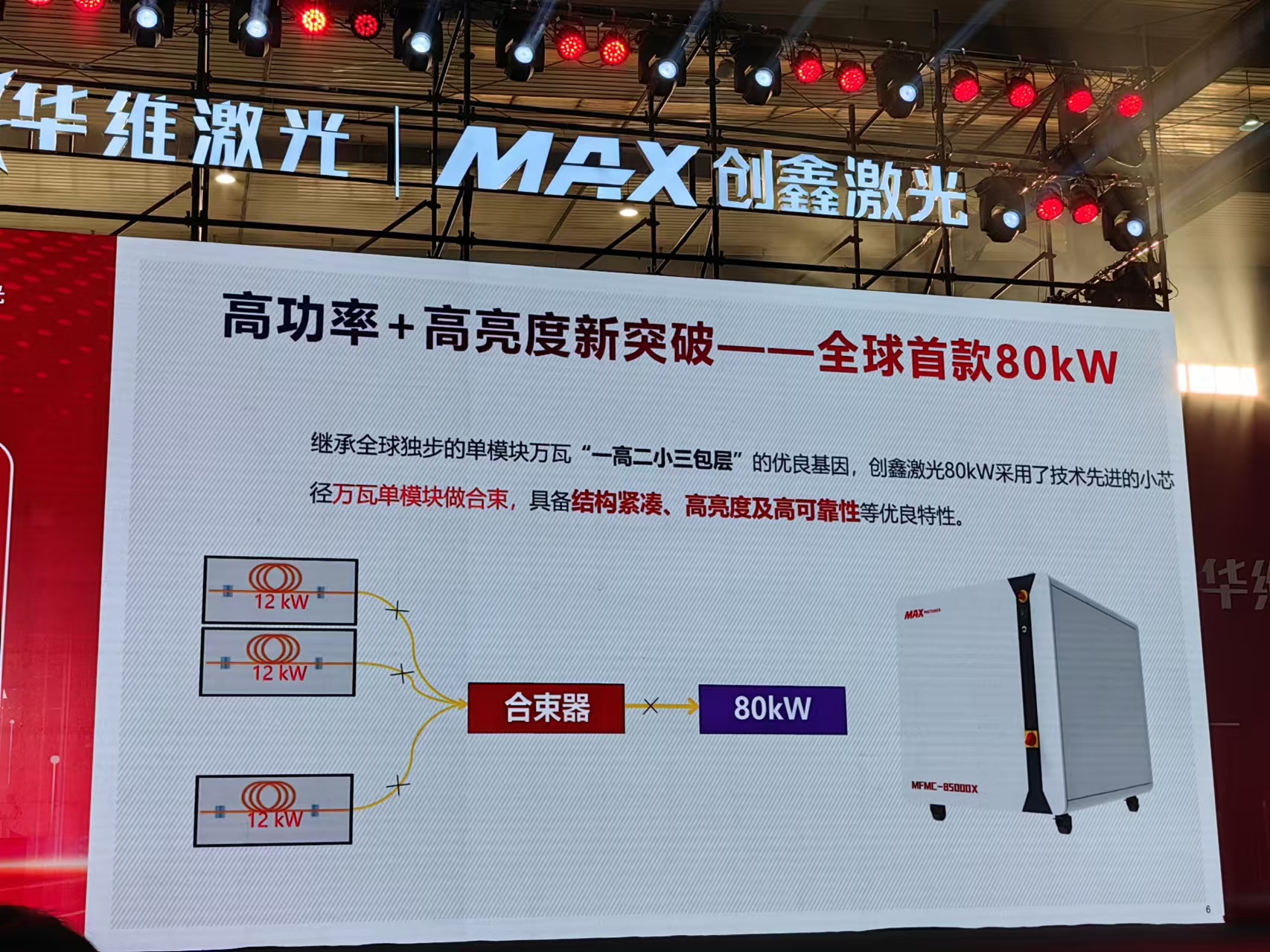 深圳市創鑫激光銷售總監梁創介紹了光纖激光器、半導體激光器、激光設備等產品,主要應用于工業制造、科研、醫療等領域。本次發布的8萬瓦激光切割設備使用了該公司的高功率光纖激光器,其技術指標刷新了全球記錄,未來將與華維激光繼續在超高功率激光技術方面深度合作。