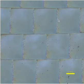 通過顯微鏡觀察樣品如圖7所示,在微觀下,方形光斑邊緣明顯內部均勻,光斑搭接狀態良好且基材沒有損傷,表面整體比較美觀。各項工藝結果均高效達成客戶要求。