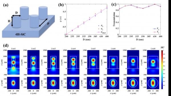 圖3. 4H-SiC超透鏡形貌表征與光學(xué)測試