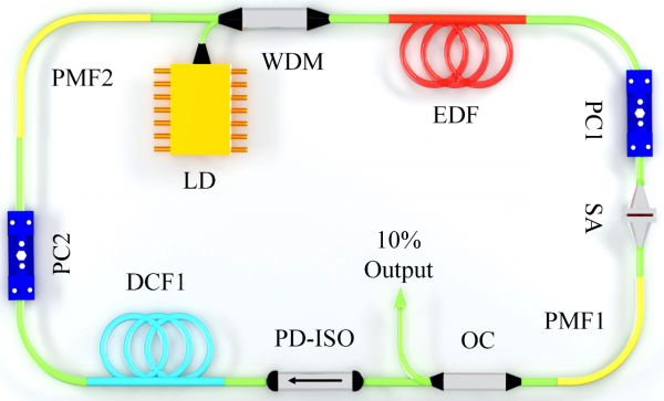 圖1 雙被動混合鎖模光纖激光器結構示意圖