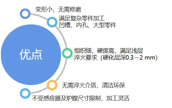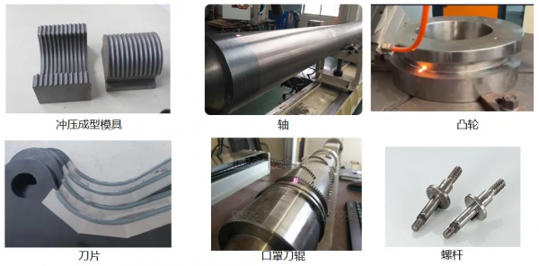 對于零件局部淬火,傳統加工方法為火焰淬火或感應淬火,火焰淬火和感應淬火均需要淬火介質,且感應淬火需要制作相應的工裝,對于復雜零件,其工裝制作成本和難度較大。基于此,激光淬火有顯著的優勢,具體見圖1。同時基于固態相變重結晶強化機理作用,激光淬火層硬度、耐磨性和韌性均優其他于傳統淬火層。從激光淬火的市場應用來看,該技術目前主要用于汽車模具、刃具、鋼軌、發動機缸體等的加工,圖2為典型的激光淬火零件。