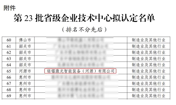 此次獲評廣東省企業技術中心,不僅為銘鐳激光的發展征程樹立了新的里程碑,更彰顯了銘鐳公司在技術研發方面的強勁實力。