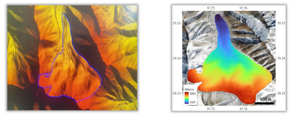 七一冰川表面數字高程模型??????????????七一冰川冰底基巖數字高程模型