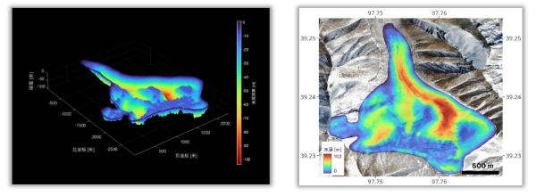 七一冰川三維透視圖?????????????????????七一冰川厚度分布圖