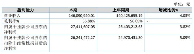 據(jù)奇致激光招股書顯示,2020 年、2021 年、2022 年及 2023 上半年,奇致激光實現(xiàn)營業(yè)收入分別約為 1.8 億元、2.4 億元、2.45 億元和 6258 萬元;歸母凈利潤分別為 2883.4 萬元、3356.8 萬元、4022.3 萬元和 1112.3 萬元,毛利率達(dá)到 55.5%、57.8%、55.6%和 59.9%,處于較高水準(zhǔn)。奇致激光 2024 年半年度報告顯示,公司今年上半年實現(xiàn)營業(yè)收入約 1.46 億元,凈利潤約 2738 萬元,研發(fā)費用約達(dá)到 1129 萬元,占營業(yè)收入的 7.73%。