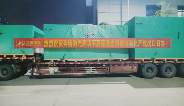 2024年12月2日,奔騰激光溫州工廠多輛大型貨車一字排開整裝待發。由奔騰激光研發生產的高功率高速激光切割自動化產線,經過日本客戶15天24小時不間斷運行嚴格驗收合格后,今天裝車發往日本。