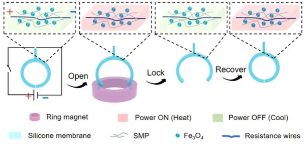 研究團(tuán)隊(duì)設(shè)計(jì)了一種電熱-磁復(fù)合驅(qū)動(dòng)的形狀記憶微夾持器(EM-SMP)。該微夾持器通過飛秒激光加工技術(shù)實(shí)現(xiàn)高精度制造,并在形狀記憶聚合物基體中嵌入Fe?O?顆粒和電阻絲,從而能在電流和磁場作用下實(shí)現(xiàn)快速響應(yīng)(響應(yīng)時(shí)間約為0.9s)。該設(shè)計(jì)在操作過程中僅在夾持器張開時(shí)施加磁場,閉合則通過電熱觸發(fā)的形狀記憶效應(yīng)完成,使其能夠在無磁干擾的情況下安全夾持磁性物體,并在冷卻后實(shí)現(xiàn)無需能耗的穩(wěn)定鎖定狀態(tài)。此外,其獨(dú)特的爪形結(jié)構(gòu)有效提升了負(fù)載能力,自重負(fù)載比高達(dá)2380,顯著增強(qiáng)了夾持性能。該進(jìn)展以“High-Load Shape Memory Microgripper with Embedded Resistive Heating and Magnetic Actuation”為題于2025年2月3日發(fā)表在《Advanced Functional Materials》。 圖2. EM-SMP夾持器工作機(jī)理示意圖 研究團(tuán)隊(duì)設(shè)計(jì)了一種磁/光雙響應(yīng)形狀記憶夾持器。通過將Fe?O?納米顆粒嵌入形狀記憶聚合物(SMP)基體,賦予材料光熱轉(zhuǎn)換與磁響應(yīng)特性。基于飛秒激光加工與模板復(fù)刻技術(shù),制備了可精確調(diào)控的微結(jié)構(gòu)夾爪。在近紅外光(NIR)與環(huán)形磁場協(xié)同作用下,夾爪通過光熱效應(yīng)軟化并受磁力驅(qū)動(dòng)展開至臨時(shí)開合態(tài);撤去磁場后,其形狀可固定,而再次施加NIR則觸發(fā)形狀記憶效應(yīng)恢復(fù)閉合態(tài)。實(shí)驗(yàn)表明,該夾持器可操控跨尺度物體(微米級液滴至厘米級金屬件),最大負(fù)載達(dá)自身重量的1730倍,并能在密閉空間內(nèi)精準(zhǔn)轉(zhuǎn)移固體與液體。此外,其成功應(yīng)用于多種微液滴操控及液態(tài)金屬電路控制,為微創(chuàng)手術(shù)器械與工業(yè)精密操作提供了創(chuàng)新解決方案。該進(jìn)展以“A Versatile Dual-Responsive Shape-Memory Gripper via Additive Manufacturing Toward High-Performance Cross-Scale Objects Maneuvering”為題于2025年1月24日發(fā)表于《Small》。 圖3. 磁/光雙響應(yīng)形狀記憶微爪磁熱協(xié)同驅(qū)動(dòng)與跨尺度操控 研究團(tuán)隊(duì)提出飛秒激光表面處理(FLSP)新策略。通過調(diào)控激光功率(100–400 mW)在LPBF鈦合金表面構(gòu)建周期性納米波紋與微納分級結(jié)構(gòu),結(jié)合空氣暴露加速Ti2?氧化為Ti??,形成致密TiO?鈍化膜。實(shí)驗(yàn)表明,F(xiàn)LSP處理后的樣品在3.5% NaCl溶液中腐蝕電流密度(icorr)由2.05 μA/cm2降至0.044 μA/cm2(降幅97.8%),鈍化電流密度(ip)降低70.8%,且呈現(xiàn)多層鈍化行為。XPS分析證實(shí),空氣暴露30天后,表面Ti??占比提升,氧化膜厚度與致密度顯著增加,有效阻隔Cl?侵蝕。經(jīng)過45天浸泡實(shí)驗(yàn),F(xiàn)LSP處理樣品未出現(xiàn)明顯局部腐蝕,驗(yàn)證了其長效防護(hù)能力。該進(jìn)展以“Femtosecond laser-induced micro/nanostructures facilitated multiple passivation and long-term anti-corrosion property of laser powder bed fused Ti-6Al-4V alloy”為題于2025年1月30日發(fā)表于《Corrosion Science》。 圖4.飛秒激光誘導(dǎo)微納米結(jié)構(gòu)促進(jìn)合金的多重鈍化和長期防腐性能 課題組與中國科學(xué)技術(shù)大學(xué)吳東教授、香港中文大學(xué)張立教授課題組等分別開展合作,相關(guān)研究工作得到了國家自然科學(xué)基金、國家重點(diǎn)研發(fā)計(jì)劃、合肥工業(yè)大學(xué)優(yōu)秀青年人才培育計(jì)劃等項(xiàng)目的支持,系列進(jìn)展可以為先進(jìn)制造、集成傳感器、智能機(jī)器人、生物醫(yī)療等領(lǐng)域提供重要技術(shù)支撐。