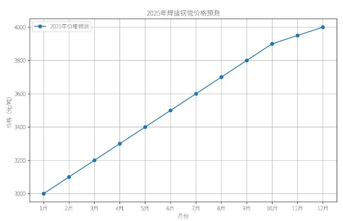 以下為2025年焊接鋼管價(jià)格預(yù)測(cè)圖,展示了未來(lái)一年焊管價(jià)格的可能走勢(shì):
