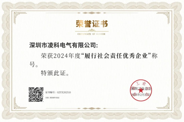 近日,由深圳工業總會主辦的以“聚力創新,智贏未來”為主題的第五屆深圳企業創新促進大會在深圳舉行。憑借在履行社會責任方面的擔當與奉獻,凌科電氣榮膺2024年度“履行社會責任優秀企業”的榮譽;公司總經理林順華先生榮獲“履行社會責任杰出人物”殊榮。