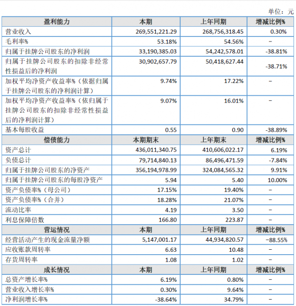 近日,武漢奇致激光技術股份有限公司(證券代碼:832861)發布2024年度報告,報告期內,公司實現營業收入約2.70億元,同比微增0.30%;歸屬股東凈利潤為3319.04萬元,同比大幅下降38.81%;基本每股收益從上年0.90元降至0.55元。經營活動現金流凈額同比驟降88.55%,僅為514.70萬元,主要因銷售回款減少及采購支出增加。