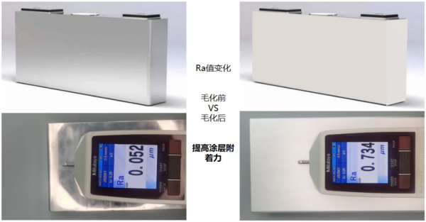 UV涂裝工藝對電池殼表面粗糙度(Ra值)要求極高,精準控制表面粗糙度是確保涂層附著力、絕緣性能、耐老化性能及提升UV涂裝效率的關鍵。在這一領域,激光技術憑借其卓越的精準控制能力,為實現UV涂裝工藝的優化升級提供了有力支持。