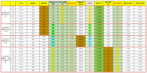 1、平均功率對Ra的影響:峰值功率不變,平均功率增加,Ra值隨之增大