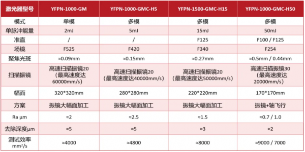 方案優勢:高功率輸出,聚焦光斑較大,效率高,最大效率可達9000+mm2/s。可全自動化集成,適用范圍廣,滿足不同材質和厚度的電池殼需求。專為電池毛化定制的YFPN-1000-GMC-H50方型光斑激光器,可配合振鏡進行飛行打樣,大幅提高加工效率。