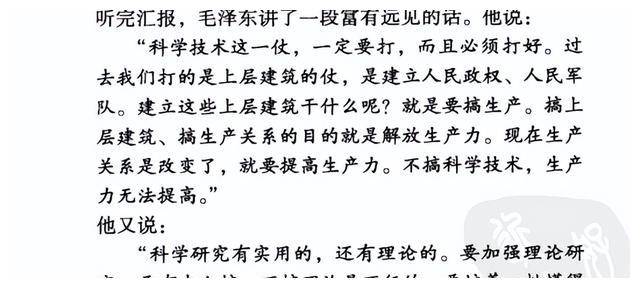 從這段話可以看出:一是毛主席非常注重科學技術!搞科學技術的目的就是提高生產力!