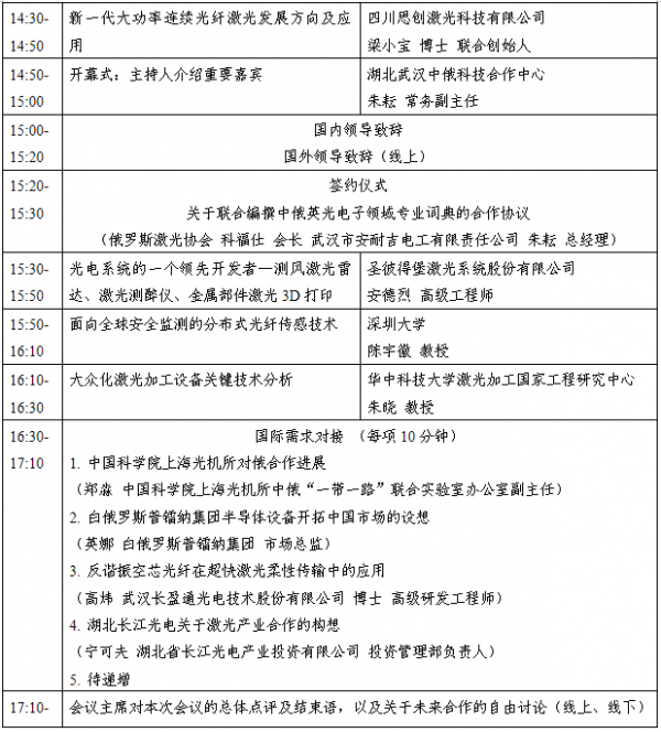 支持單位:華中科技大學激光加工國家工程研究中心、湖北省對外科技交流中心、湖北省長江光電產業投資有限公司、武漢光電工業技術研究院、武漢中國光谷激光行業協會、湖北省激光學會、武漢激光學會、廣東省激光行業協會、華中科技大學高功率激光器國家級國際聯合研究中心、湖北東湖國家綠色光電國際創新園、武漢國家衛星產業國際創新園、創世光、激光制造網。