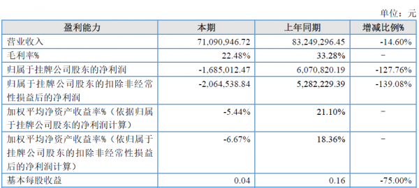 湖北嘉一三維高科股份有限公司2024年度實現營業收入7109.09萬元,同比下降14.60%;凈虧損168.50萬元,較去年同期的607.08萬元同比下滑127.76%。