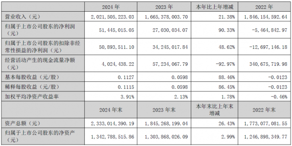 鉑力特2024年度實現營業總收入13.26億元,同比增長15.02%;歸母凈利潤1.04億元,同比下降5.26%;扣非凈利潤3567.43萬元,同比下降51.98%。
