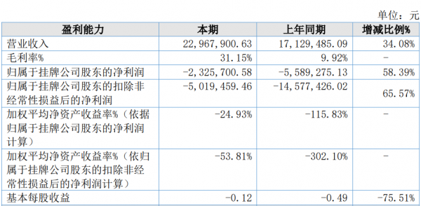 深圳市極光創新科技股份有限公司(極光創新)2024年度實現營業收入2296.79萬元,同比增長34.08%;歸母凈利潤虧損232.57萬元,同比減少58.39%。
