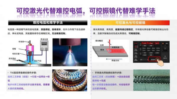 1、可控激光替代難控電弧,可控振鏡替代難學手法從技術上成為激光替代電弧的基礎