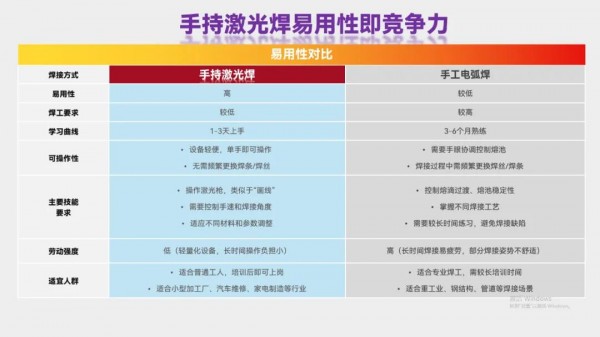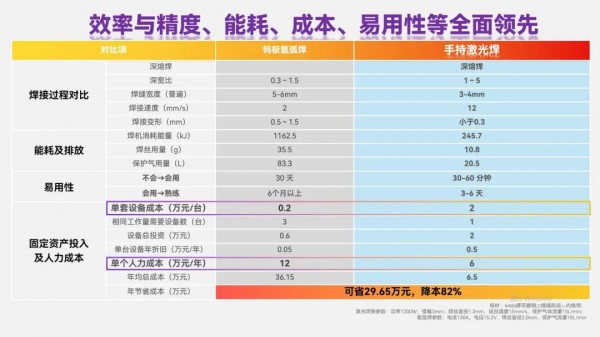 2、易用+高熔深+增效+降本讓手持激光焊從應用上對電弧焊具備碾壓式競爭優勢
