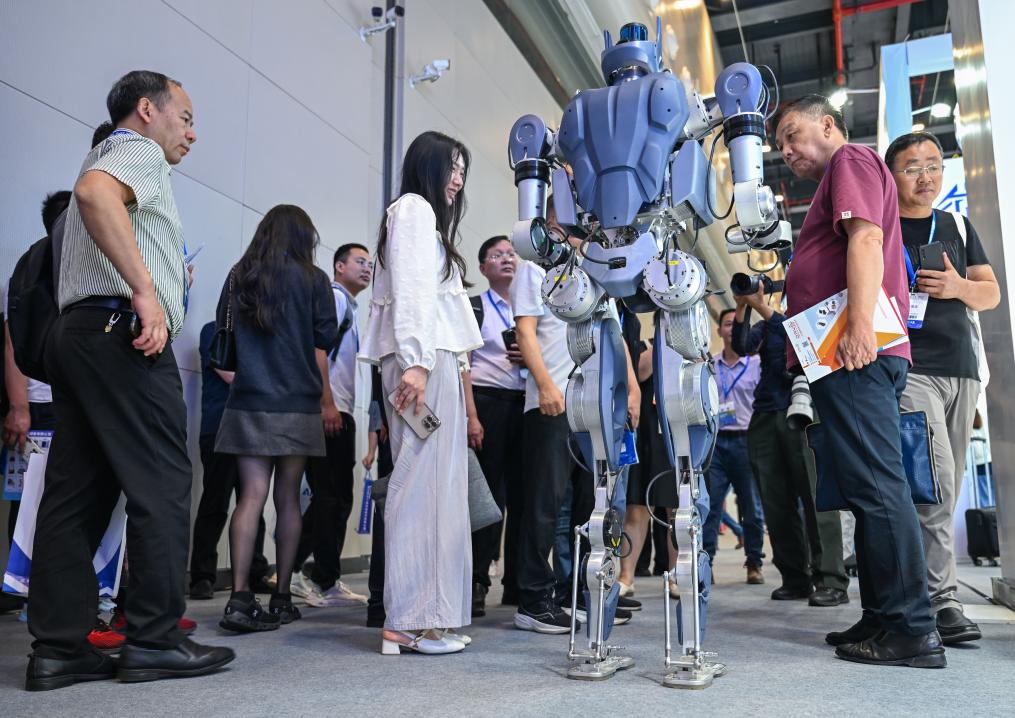 觀眾在光博會上參觀人形機器人。新華社記者杜子璇 攝