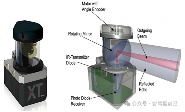 機(jī)械式激光雷達(dá)需要帶動(dòng)反射鏡旋轉(zhuǎn)掃描,靠接收反射光來測定目標(biāo)的距離、方位和反射強(qiáng)度。
