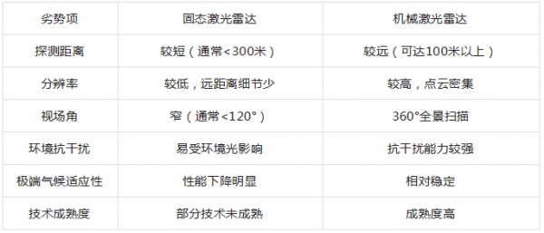 而且固態(tài)激光雷達(dá)相比機(jī)械激光雷達(dá)還有些劣勢: