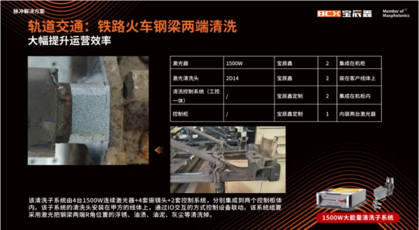 在軌道交通、光伏、輪胎模具制造等應用場景中,寶辰鑫MOPA脈沖激光方案憑借“對癥下藥”,針對客戶的細分應用場景需求,以光源+外光路+控制系統為一體的一站式解決方案為客戶帶來效率與質量的雙贏!