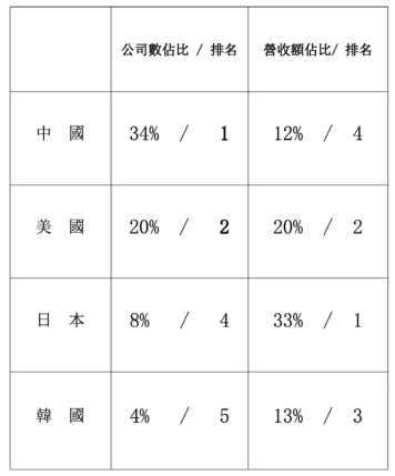 表1 主要國家激光制造公司數與營收額比對表(源自顧波會議報告:全球光子產業現狀和發展)