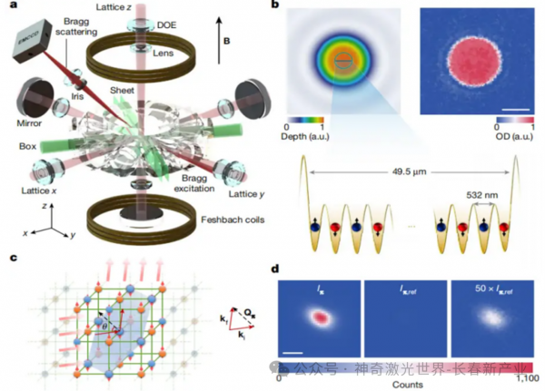 光晶格:激光形成周期性勢場(如1064nm激光),囚禁超冷原子模擬 Hubbard 模型,研究高溫超導機制。