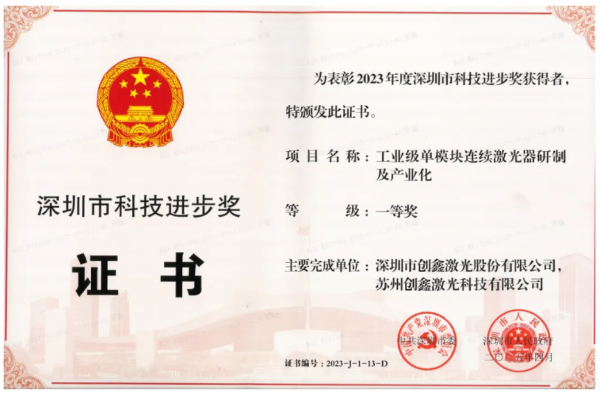 連續(xù)斬獲兩項(xiàng)榮譽(yù),不僅是對(duì)創(chuàng)鑫在激光領(lǐng)域長期以技術(shù)為根、創(chuàng)新為核心競爭力的充分肯定,更是創(chuàng)鑫在技術(shù)創(chuàng)新性、經(jīng)濟(jì)效益、社會(huì)效益多方面獲權(quán)威認(rèn)可的有力證明!