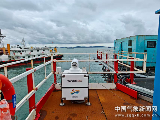 7月10日,福建省廈門市氣象服務中心在廈金大橋(廈門段)東塔海上建設平臺部署一部激光測風雷達。