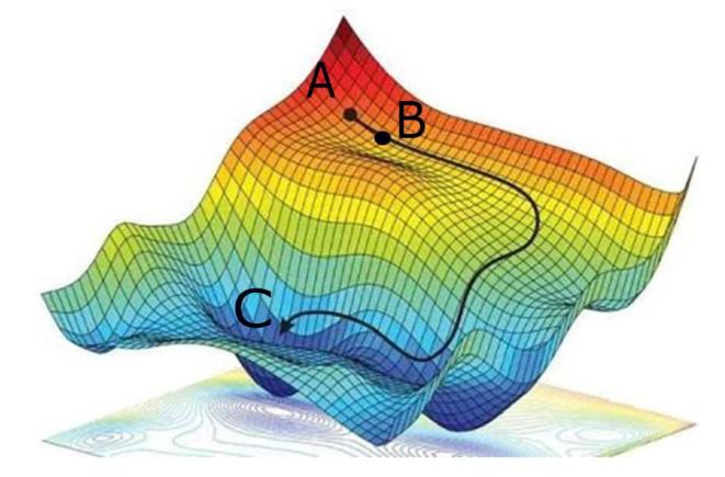 這種遇到“假山谷”的情況就使得 AI 陷入“局部最小值”,而無法達到“全局最小值”。為了避免這一問題,可以通過調節步伐大小、引入隨機擾動等方法,盡快讓 AI 跳出小洼地,找到“全局最小值”, 從而到達山谷。