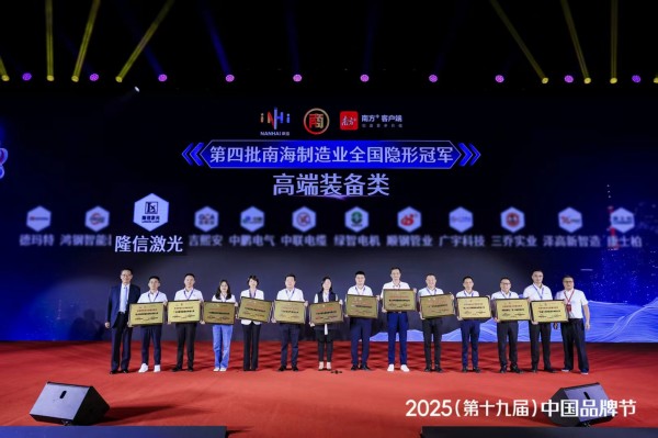 在當晚品牌節特設“2025中國制造業隱形冠軍(南海)榜單”頒發環節,隆信激光三維激光切管機以超高市場占有率,實力斬獲南海制造業全國“隱形冠軍”。