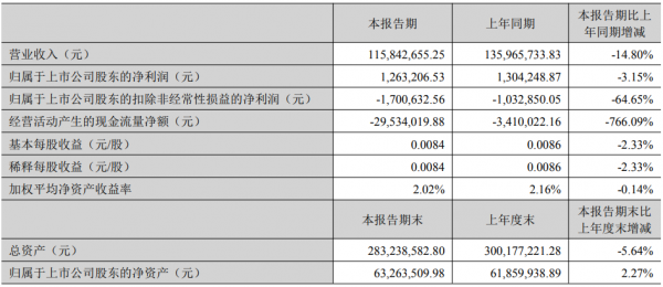 8月27日晚間,金運(yùn)激光(300220.SZ)發(fā)布公告,2025年半年度營(yíng)業(yè)收入1.16億元,同比下降14.80%;歸屬于上市公司股東的凈利潤(rùn)為126.32萬元,同比下降3.15%。