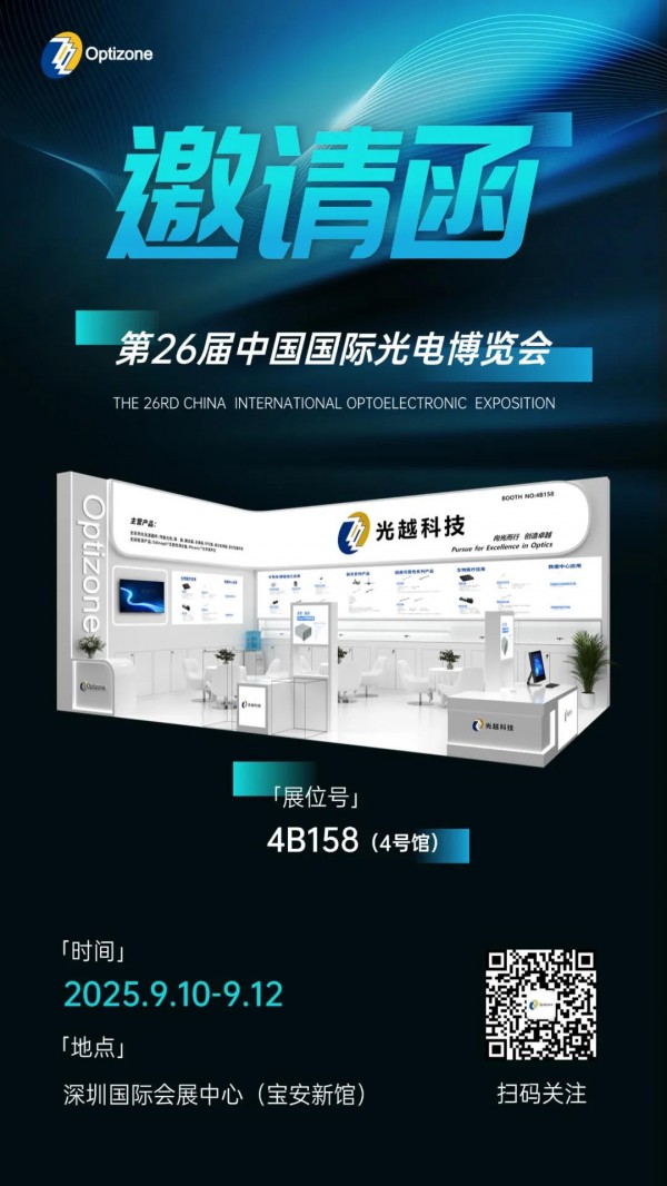 9月10日-12日,第26屆中國國際光電博覽會(CIOE 2025)將在深圳國際會展中心盛大啟幕,本屆展會以匯聚全球超3800家光電企業(yè),覆蓋信息通信、精密光學(xué)、激光智能制造、智能傳感等八大主題展,打造30萬㎡的光電產(chǎn)業(yè)盛宴?。屆時,光越科技(深圳)有限公司攜多款重磅產(chǎn)品亮相4號館4B158展位,誠邀您共赴盛宴。
