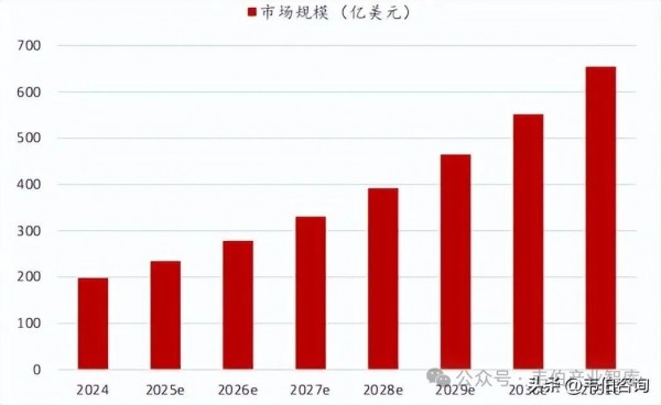 消費級市場進入爆發式增長階段,2024年規模約198億美元,預計2031年將達654億美元,年復合增速18.6%。
