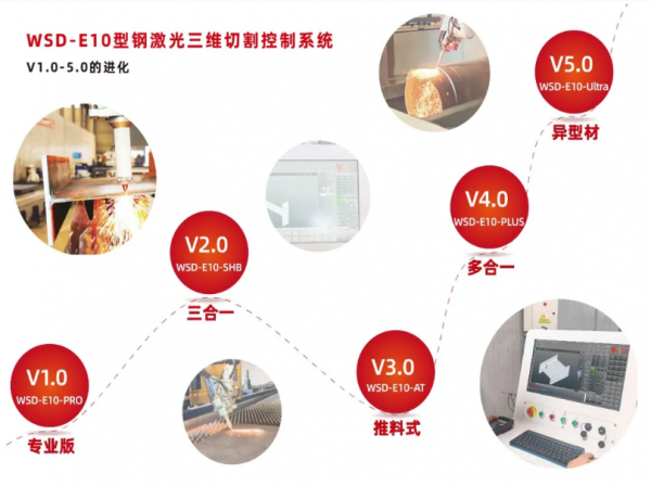 WSD-E10型鋼激光三維切割控制系統1.0-5.0發展傳奇(下) 從多型材普適到異型材定制的飛躍 在 WSD-E10 型鋼激光三維切割控制系統成功構建并完善了其基礎功能(1.0-3.0 版本)的基礎上,威士登公司并未止步于已有的成就。秉持著對技術革新的不懈追求和對行業需求的深刻洞察,威士登公司持續加大研發投入,不斷突破技術瓶頸,最終推出了更具前瞻性和普適性的 4.0 版本以及面向高端、復雜需求的 5.0 版本。這不僅進一步鞏固了威士登在鋼結構加工領域的領軍地位,更以前瞻性的技術推動了整個行業向更高效率、更高精度和更高復雜度的方向邁進。 4.0時代 WSD-E10-PLUS - 多型材切割的集大成者 WSD-E10 系統進入 4.0 時代,其標志性產品便是于 2024 年中國工博會上驚艷亮相的 WSD-E10-PLUS 型鋼激光三維切割控制系統。這一版本的核心突破在于其實現了對多種型材的普適性切割能力,極大地拓展了系統的應用范圍。 WSD-E10-PLUS 不再局限于傳統的工字鋼、角鋼、槽鋼等單一或有限的型材類型,而是能夠輕松應對包括平板、平坡、工字鋼、角鋼、槽鋼在內的多種截面形狀,更值得一提的是,它還具備了對尺寸各異的方管和圓管進行高效、精準切割的能力。這一功能的顯著拓展,使得 WSD-E10-PLUS 成為了那些業務涵蓋板材、型材、管材等多種來料加工需求的綜合型加工戶和分包商的首選設備。 在 WSD-E10-PLUS 問世之前,面對多樣化的加工任務,這些企業往往需要投入巨資購置多臺功能單一、針對不同型材的切割設備。這不僅導致了寶貴的生產空間被大量占用,更大幅增加了設備的購置成本、維護費用以及操作人員的培訓成本。而 WSD-E10-PLUS 憑借其強大的綜合切割能力,為企業提供了一站式解決方案。它集多種切割功能于一體,實現了設備投資的優化、生產流程的簡化以及運營成本的顯著降低。在實際應用中,WSD-E10-PLUS 的高效表現和多功能性贏得了市場的廣泛認可和一致好評,極大地提升了企業的生產效率和市場競爭力。 WSD-E10-PLUS 的成功推出,是威士登在型鋼切割領域技術積淀的集中體現,標志著威士登在該領域再次攀上新的高峰。正是在這一時期,威士登公司在管理層李振宇總經理的帶領下,進行了內部結構的重大變革。通過加大投入,接連成立了測試中心、工藝中心和研發中心,這不僅加強了產品從設計、測試到工藝優化的全流程控制,更為后續的技術創新奠定了堅實的基礎。威士登公司也從最初的幾人小團隊迅速壯大,各部門職能齊全,在更多威士登人的持續努力和協同合作下,公司的發展速度顯著加快。 WSD-E10-Ultra - 異型材加工的巔峰之作 WSD-E10-Ultra 系統的核心技術在于其采用了功能強大的三維五軸數控技術。這種先進的控制技術能夠實現刀具(激光頭)在三個直線軸和兩個旋轉軸上的同時聯動,從而在三維空間內實現對復雜曲面和任意角度的精準切割。結合威士登自主研發的WisCut 激光切割軟件和WisNest3D 離線編程套料軟件,WSD-E10-Ultra 能夠輕松應對異型材的激光切割加工。 其強大的處理能力體現在對各種復雜結構的輕松應對。無論是結構復雜、截面變化頻繁的變徑梁,需要精準對接大小頭,還是對精度要求極高的行車梁、結構輕巧而強度足夠的魚腹梁,WSD-E10-Ultra 都能通過精準的參數調整、智能的路徑規劃和高效的編程控制,實現高質量的切割加工。此外,對于一些特殊型材,如帶有特殊截面形狀的球扁鋼、扁鋼等,甚至是不規則的任意異型材,WSD-E10-Ultra 都能憑借其卓越的技術能力,克服傳統加工方法的限制,實現高精度、高效率的切割。 對于那些專門從事特殊型材加工的供應商以及大型鋼結構加工企業中的特殊需求定制項目,WSD-E10-Ultra 無疑是最可靠、最理想的合作伙伴。它以其卓越的性能和創新的技術,為企業攻克了一個又一個在復雜結構加工中的難題,極大地提升了企業的加工能力和技術水平,助力這些企業在高端鋼結構加工領域占據了領先地位,贏得了更多高附加值的定制項目。 系統進化的基石:軟硬件技術的持續升級 在硬件配置層面,WSD-E10 系統在整個發展過程中,其關鍵硬件組件都經歷了顯著的優化和改進。這包括: CNC 三維六軸五聯動控制器 作為系統的“大腦”,控制器的性能直接決定了切割的精度和效率。從早期的簡單控制到后期的三維五軸高精度聯動,控制器的升級是系統處理復雜結構的基礎。 總線 IO 模塊組 采用總線技術提高了信號傳輸的速度和穩定性,減少了接線復雜性,提升了系統的可靠性和維護便利性。 總線調高器 精準、快速的調高能力是保證激光焦點始終處于最佳位置的關鍵,尤其在切割不平整表面或復雜型材時至關重要。總線化調高器提供了更精確的控制。 LPC 激光掃描測量模組 這一模組的引入,使得系統具備了對型材進行非接觸式掃描測量的能力,可以獲取準確的型材尺寸和形狀信息,為后續的編程和切割提供精確數據,提高了加工的智能化水平。 阿酷 ACU 擺動機構 擺動機構的升級,對于坡口切割、復雜曲線切割以及提高厚板切割質量更上一個臺階。 威鋒切割頭 先進的切割頭技術直接影響激光的聚焦效果和切割質量。威鋒切割頭的不斷優化,提供了更穩定的光束質量和更高效的切割能力。 無線手持操作 無線操作盒極大地提升了操作人員的便利性,可以在遠離控制柜的位置進行設備操作、參數調整和故障排除,提高了工作效率和安